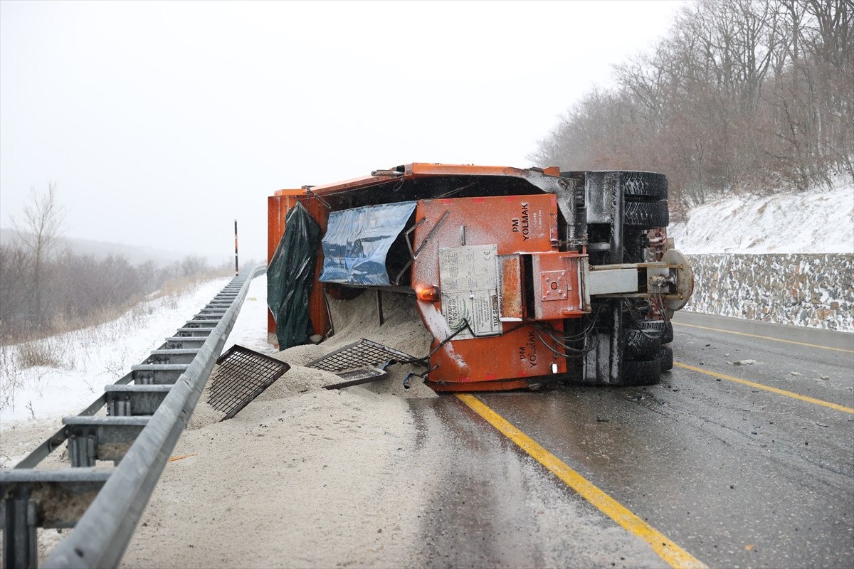Karayolları 15. Şube Şefliği’ne ait bir kar küreme aracı, Mahyatepe mevkisinde devrildi. Kazada araç sürücüsü ve araçta bulunan bir personel yaralandı. Yaralılar, ambulanslarla Pınarhisar Devlet Hastanesi’ne sevk edildi.