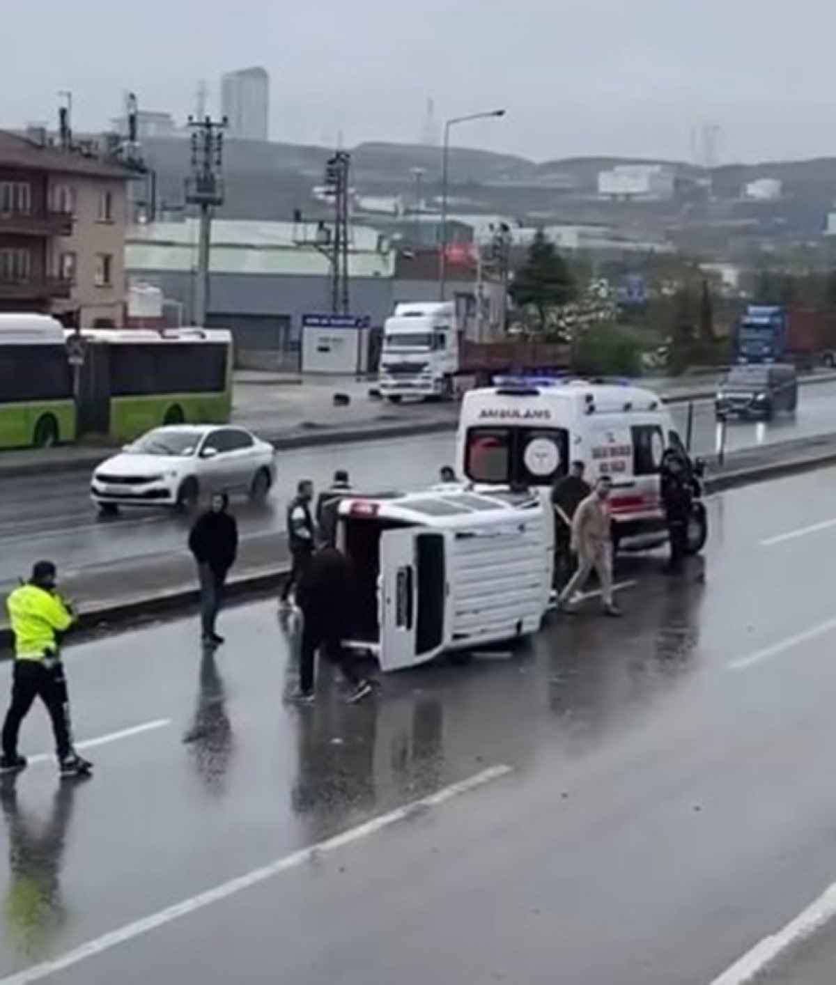 Kocaeli’nin Dilovası ilçesi D-100 kara yolunun İstanbul istikametinde seyir halinde olan hafif ticari araç kontrolden çıkarak takla attı.