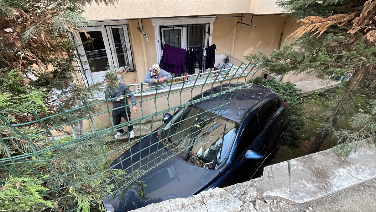 Bugün saat 11.30 civarında Kocaeli’nin Gebze ilçesindeki Arapçeşme Mahallesi 1022/4 Sokak’ta, H.M. yönetimindeki 41 YV 728 plakalı otomobil, geri manevra yaparken kontrolden çıkarak yaklaşık 3 metre yüksekliğindeki duvarı aşarak binanın bahçesine düştü.