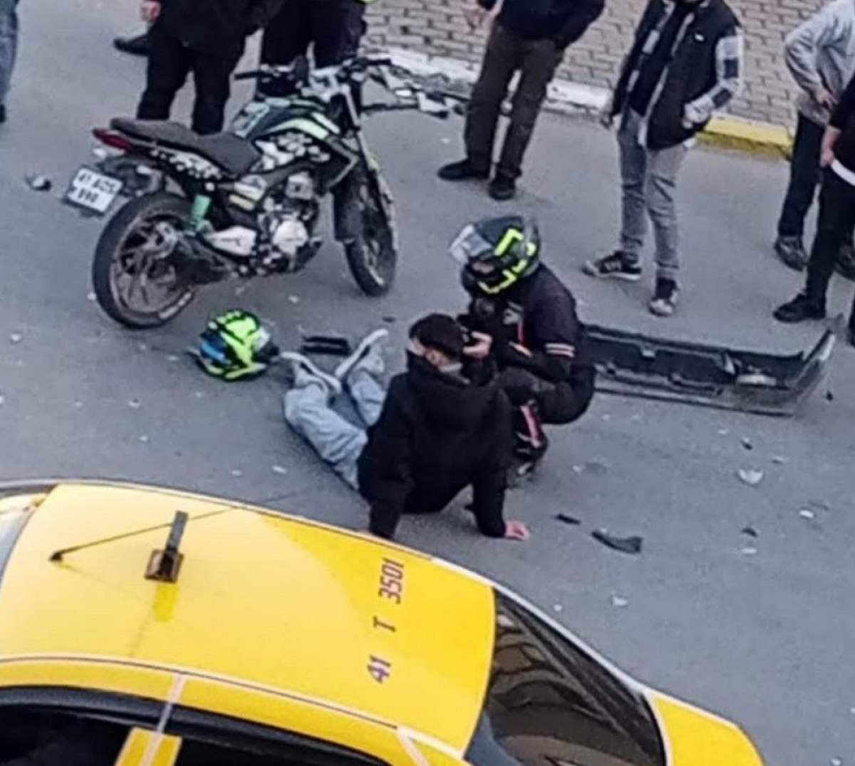Kocaeli’nin Çayırova ilçesine bağlı Özgürlük Mahallesi’nde sürücüsünün ismi öğrenilemeyen motosiklet ile otomobil çarpıştı.