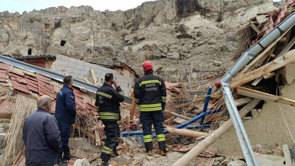 Konya’nın Selçuklu ilçesi Küçükmuhsine Mahallesi’nde kaya düşmesi sonucu bir ahırın çöktüğü ve içerisinde büyükbaş hayvanların mahsur kaldığı bilgisi üzerine olay yerine itfaiye, AFAD ve jandarma ekipleri sevk edildi.