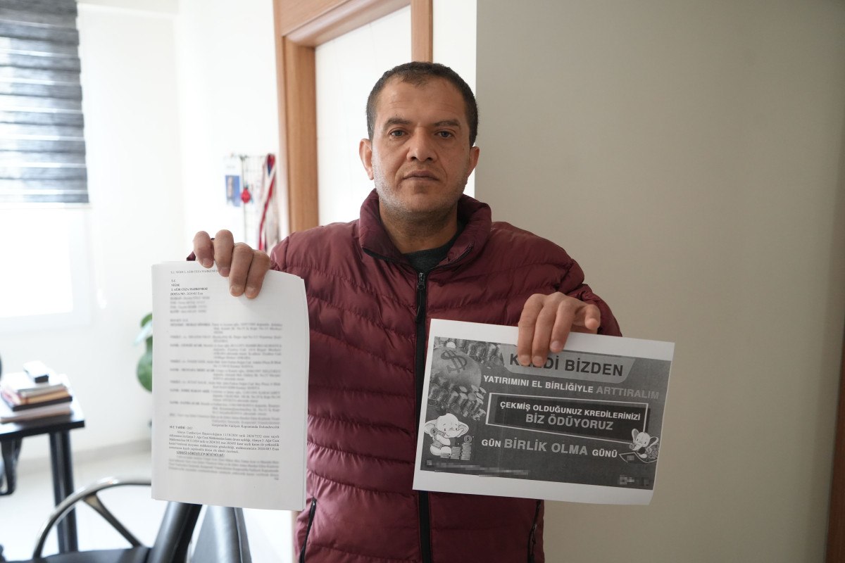 Soydan devam eden açıklamasında, “Tarafıma güvenilir gayrimenkul sözleşmesi düzenleyip attılar. Şirket danışmanları ‘İstanbul’da, Ankara’da inşaatlarımız var’ dedi. Bir süre sonra her yatırıma yüzde 5 kâr vaadi sundular, ben de kâr için düzenli kredi çekip verdim.