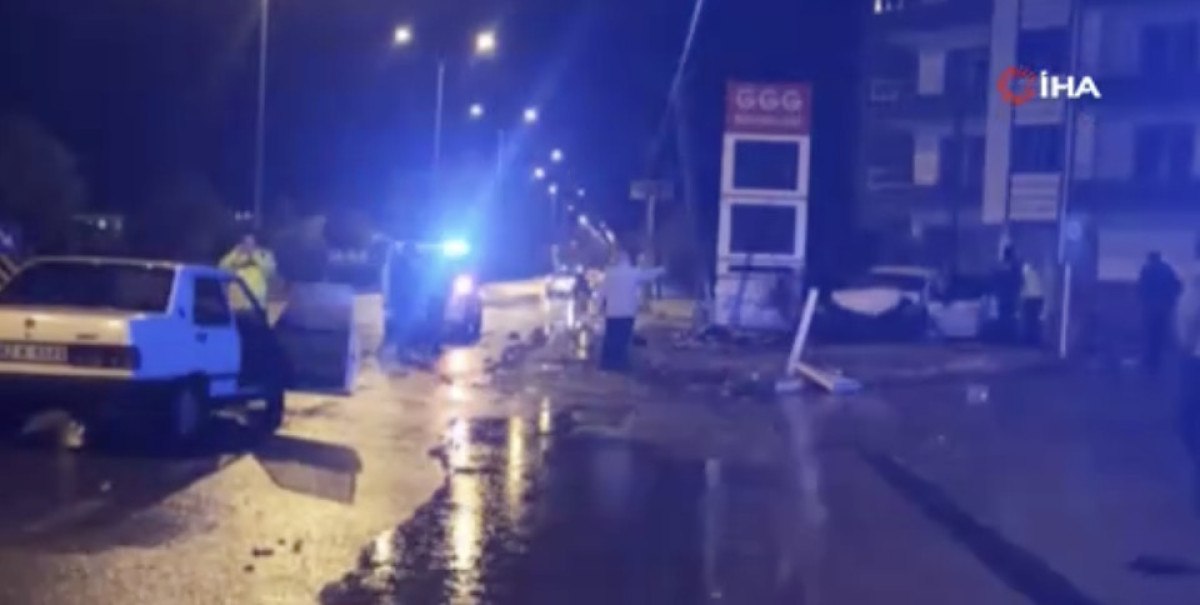 Çarpmanın etkisi ile Tofaş’ın çarptığı otomobil önce elektrik direğine daha sonra ise bir akaryakıt istasyonun reklam panosuna çarparak durabildi.