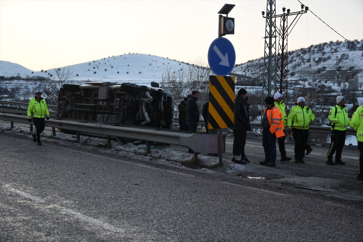 Malatya’nın Doğanşehir ilçesi Suçatı Mahallesi mevkiinde M.D. idaresindeki yolcu minibüsü, sürücüsünün direksiyon hakimiyetini kaybetmesiyle kontrolden çıkıp bariyere çarparak devrildi.