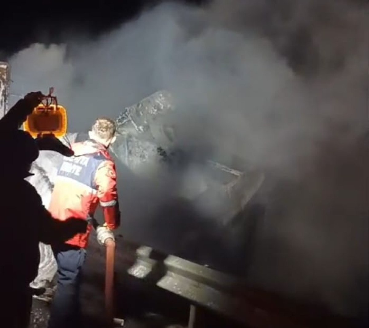 Yanan tır, ekiplerin müdahalesiyle söndürüldü.