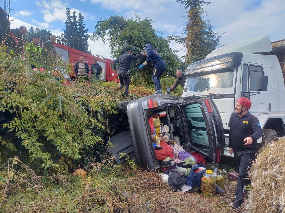 Kazayı otomobil sürücüsü yara almadan atlatırken, yolcu konumundaki eşi N.K. sıkıştı. İhbar üzerine kaza yerine sağlık, itfaiye ve polis ekipleri sevk edildi.