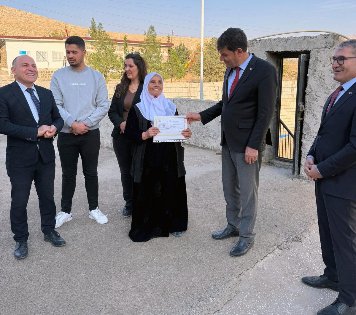 Ektiren’e sertifikasını, İl Milli Eğitim Müdürü Ali Eyyüpkoca, Teftiş ve Denetleme Kurulu Başkanı Süleyman Akın ile İlçe Milli Eğitim Müdürü Mustafa Kahraman verdi.
