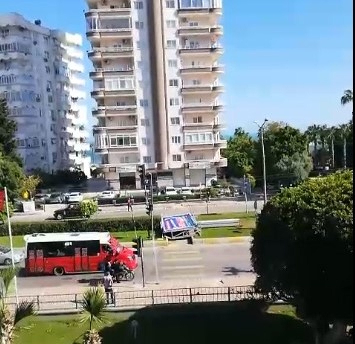 Neyse ki, çocuk kılpayı kurtulurken, fayansın çarptığı park halindeki bir otomobilde ise küçük çaplı hasar meydana geldi. Bu korkutucu anlar, yakındaki bir iş yerinin güvenlik kamerası tarafından kaydedildi. O anları şaşkın bir şekilde izleyen çocuk, korku içinde evine yöneldi.
