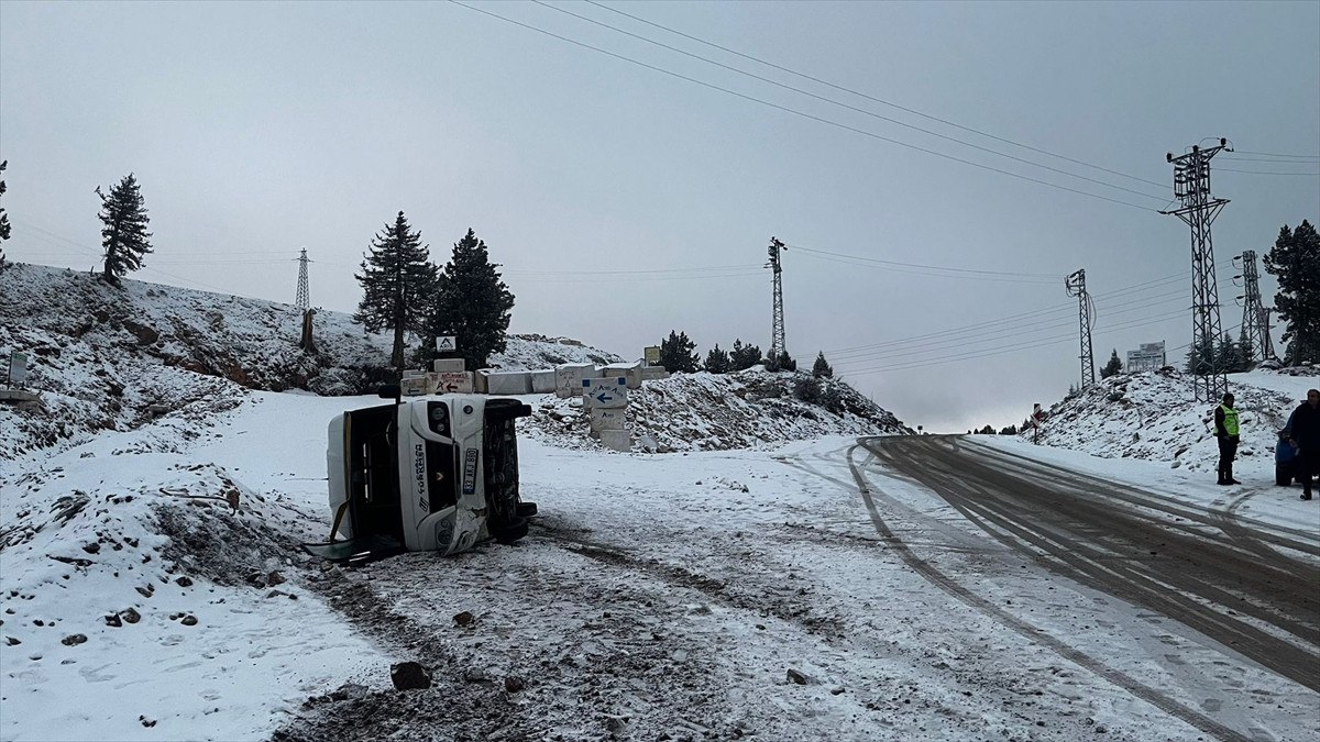 Mersin’in Erdemli ilçesi TozluMahallesi’nde M.S. idaresindeki okul servisi kar yağışı nedeniyle kontrolden çıkarak devrildi.