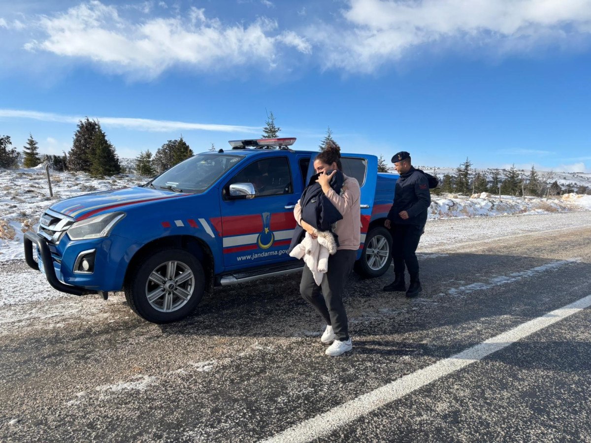 Araçlarının kara saplanması ile mahsur kalan aile jandarma ekiplerini arayıp yardım istedi.