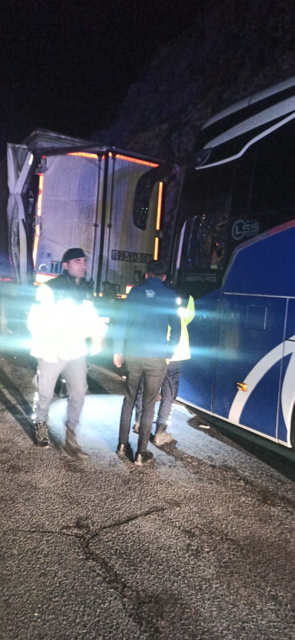 Mersin’in Tarsus ilçesi Gülek Tüneli yakınlarında Mehmet Can Ş. yönetimindeki İstanbul-Hatay seferini yapan yolcu otobüsü, Abbasov İsmail idaresindeki tıra arkadan çarptı.