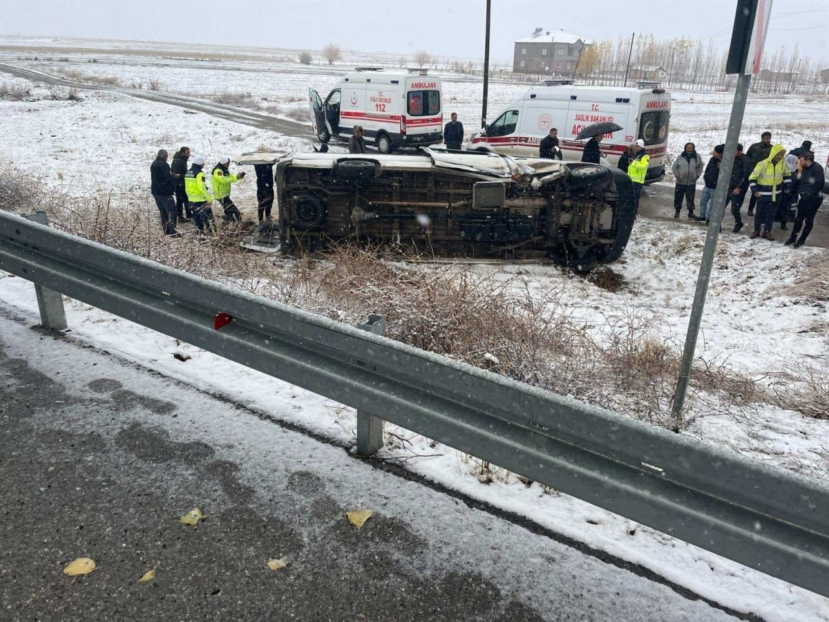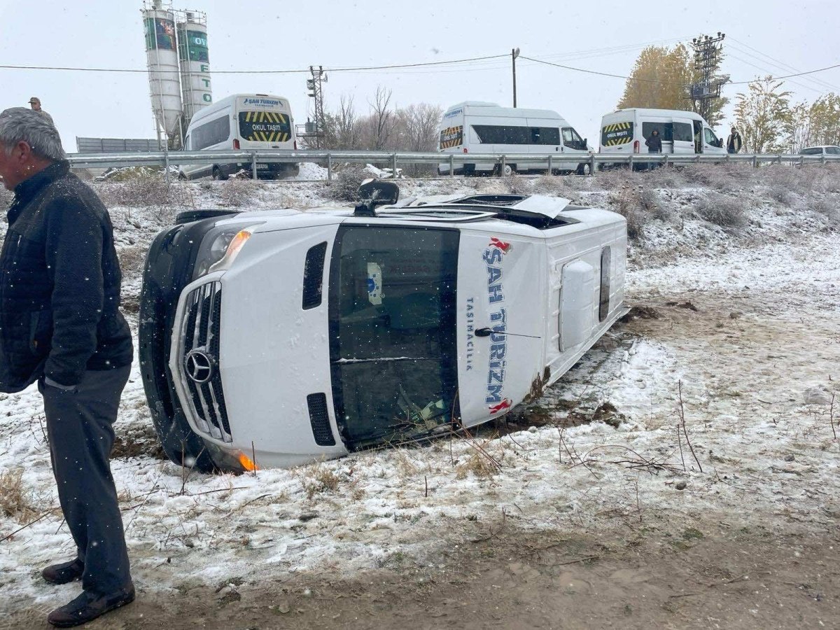 Muş-Diyarbakır karayolu üzerinde seyreden K.Y. idaresindeki servis minibüsü, Kızılağaç beldesi mevkiinde yağış nedeniyle kayganlaşan yolda kontrolden çıktı.