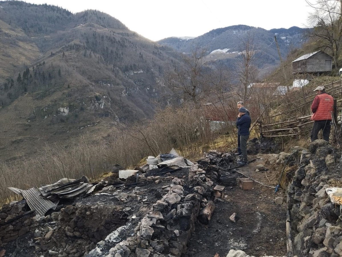 Sobadan çıktığı belirlenen yangında can ve mal kaybı olmazken, ahşap ev ve ahır tamamen yanarak küle döndü.