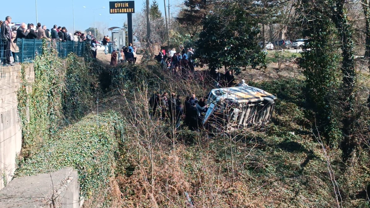 Kontrolden çıkan minibüs kaldırımdan aşağıya uçtu.