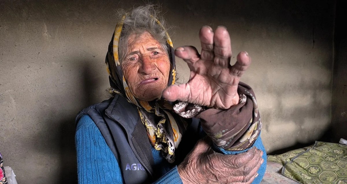 “Eşim öldü baba yurdundayım. Bir tek kötü bir odanın içerisindeyim. 65’lik maaşı veriyorlar, ne yapayım? Ufak tefek harcıyorum. Olursa evin içerisinde yapıp yemek yiyorum olmazsa yatıyorum, aç kalıyorum. Donuyorum, soba kötü bir soba, hiç iyi değil. Odun ne gezer, ocak ne gezer. Olandan ufak tefek çalı çırpı bulup yakıyorum. Elimde çalı, odun sobayı yakacağım, dondum. Bu kolum çıkmış. Ayağım birbirine dolaşıverdi düştüm. Ne bulursam onu yiyorum. El fenerim var onunla uğraşıyorum, başka bir şey yok.”
