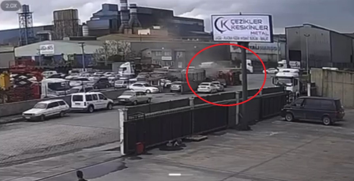 Kaza anı, çevredeki iş yerinin güvenlik kamerasına yansıdı.