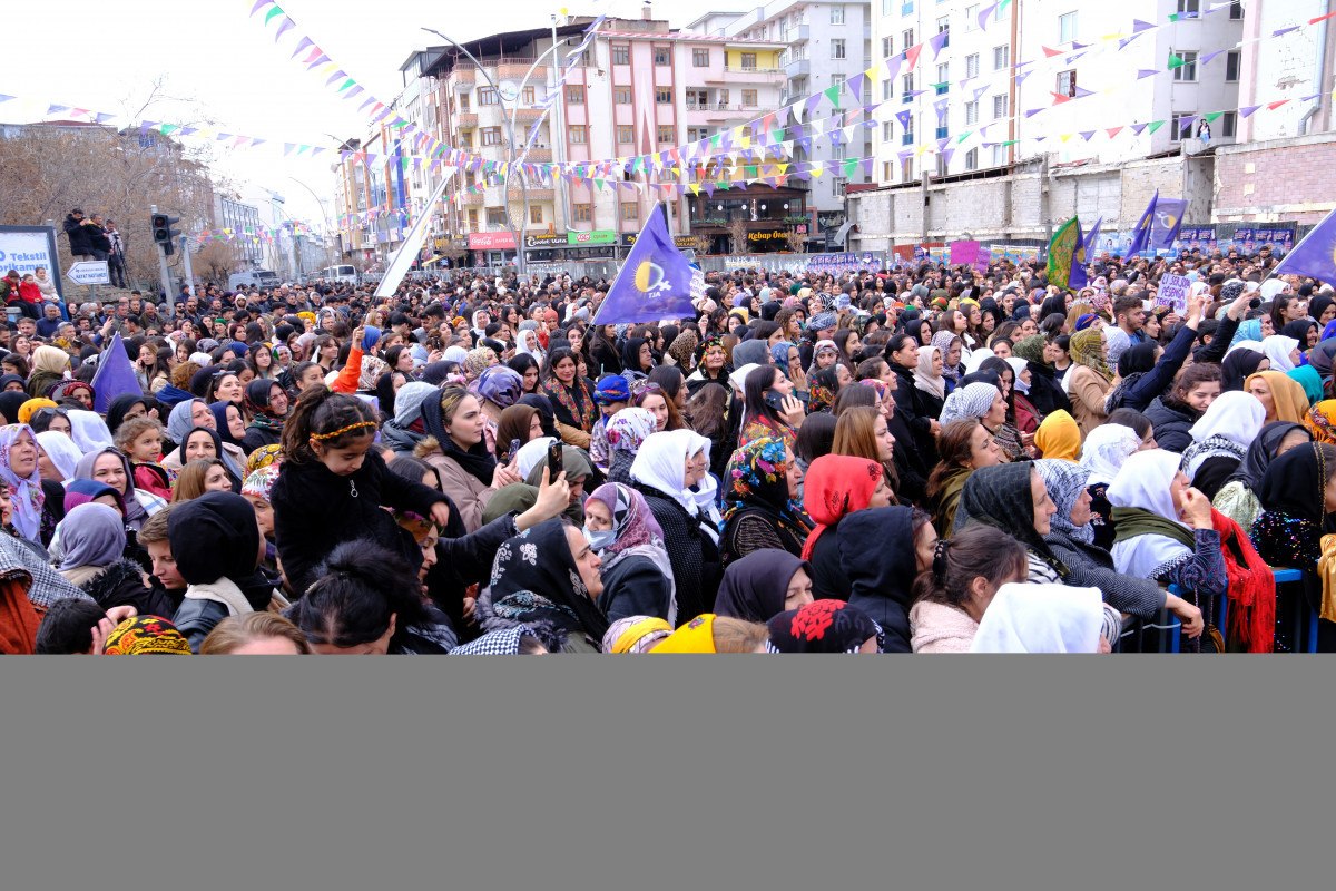 Mitingde konuşan Pervin Buldan, kadınların, 8 Mart Dünya Kadınlar Günü’nü kutladı. Buldan burada yaptığı konuşmada, “27 Şubat‘ta tarihi bir çağrı yapıldı ve çağrı barış ve demokratik toplum çağrısı. Aynı zamanda kadınlara, gençlere yapılan bir çağrı. Hepimizin önemle sahip çıkması, sımsıkı sarılması, arzularımızı, hayallerimizi, geleceğimizi büyüteceğimiz bir çağrı. Ve bu çağrıda en büyük beklenti bizlerden, biz kadınlardan bekleniyor” dedi.