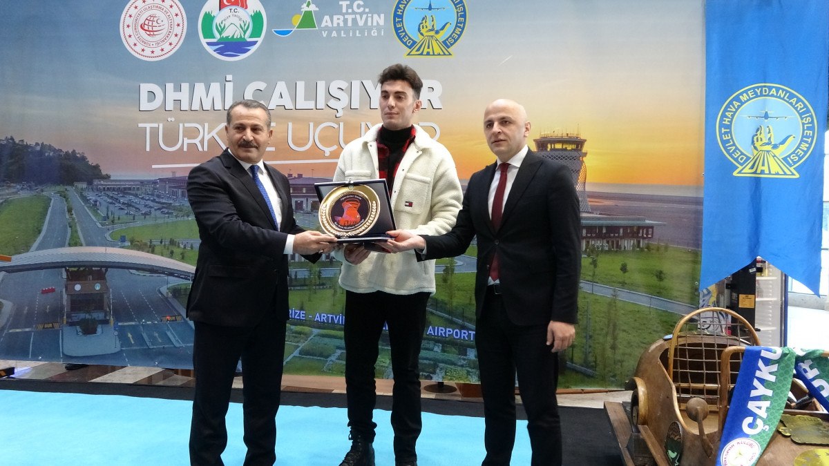 Artvin’in Arhavi ilçesinden İstanbul’a gitmek üzere son gün bilet alıp 1 milyonuncu yolcu olan Osman Erkan, havalimanında Rize Valisi tarafından karşılandı.