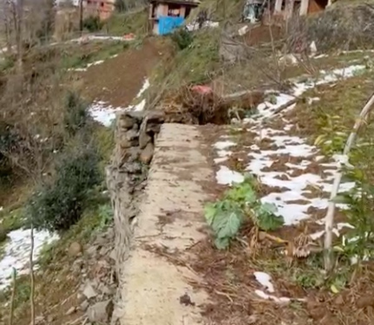 Sağanak yağışın hafiflediği bölgede, suya doygun hale gelen toprak ağırlığını taşıyamayınca bir bahçe duvarı çöktü. Yıkılma anı, çevredeki bir vatandaşın cep telefonu kamerasına saniye saniye yansıdı. Köyün bağlantısını sağlayan yol kapanmış olsa da alternatif güzergâhlarla ulaşım sağlanıyor. Ekipler, hem yolu açmak hem de heyelanın yarattığı zararları gidermek için çalışmalarını aralıksız sürdürüyor.