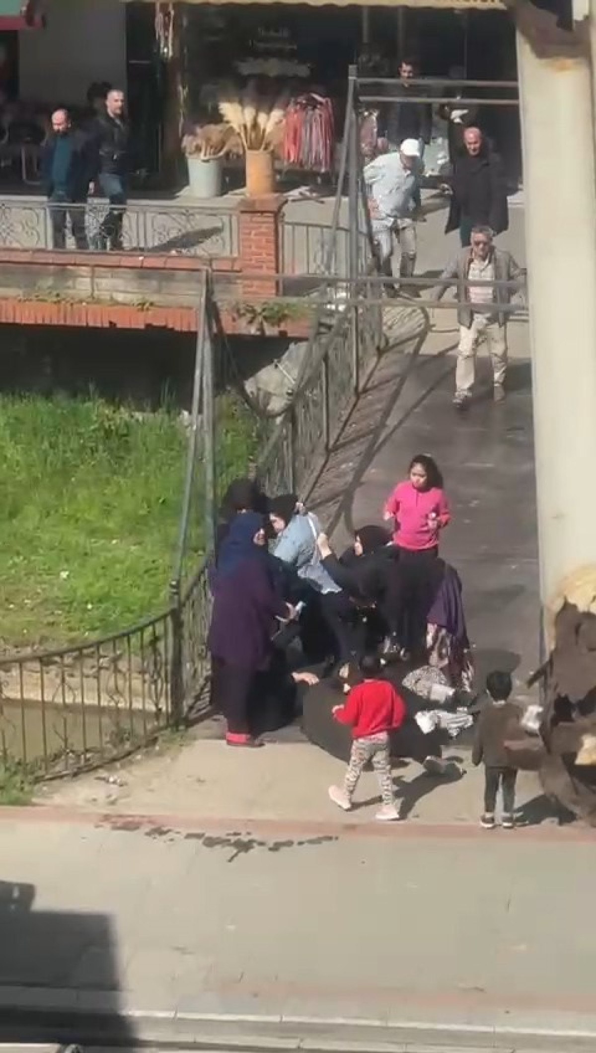 Kavga eden kadınların yanında bulunan çocuklar ise korkudan ağlamaya başladı.