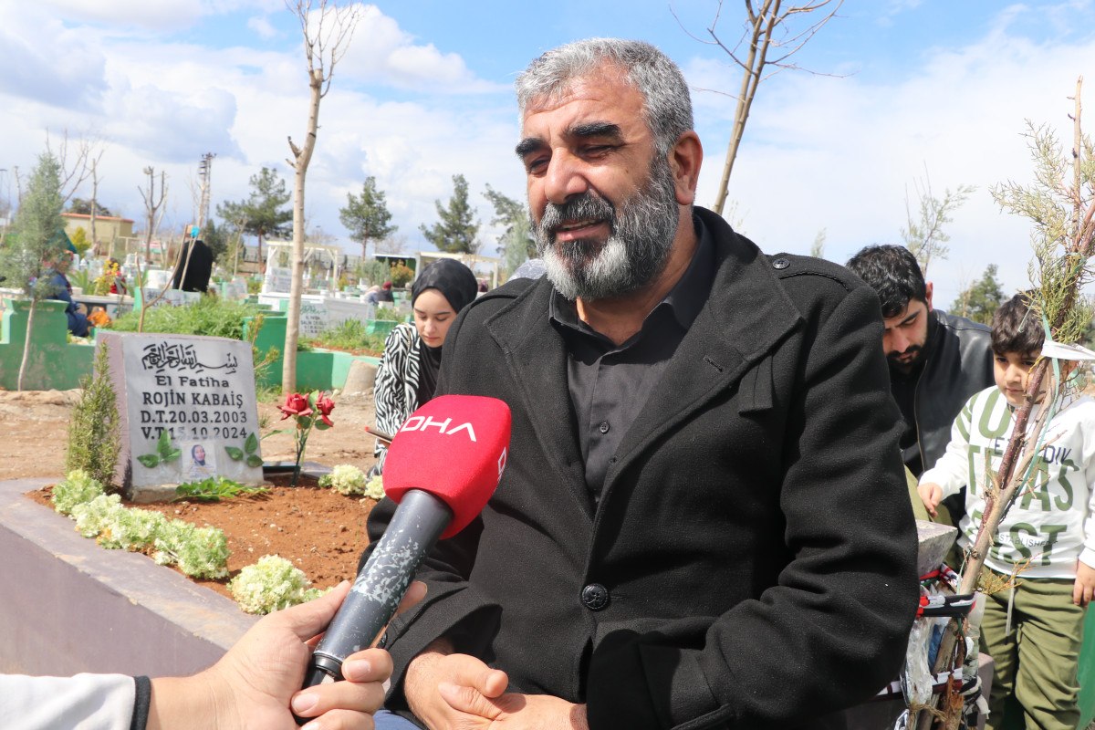 Burada konuşan Nizamettin Kabaiş, kızının doğum günü vesilesiyle mezarına geldiğini belirterek, “Bugün Rojin’imin doğum günüdür. 22 yaşına girdi. Doğum günü nedeniyle mezara geldik. Rojin’in doğum gününü evde kutluyorduk. Ne yazık ki bugün mezarındayız. Allah onun hakkını bırakmasın.