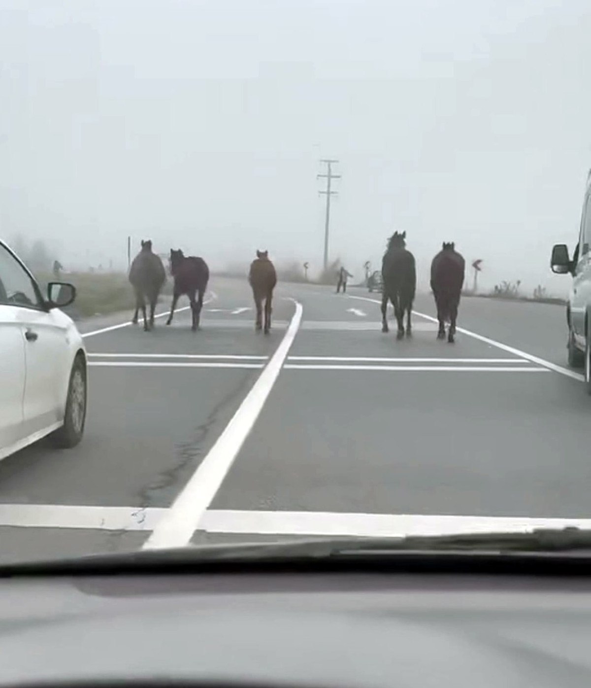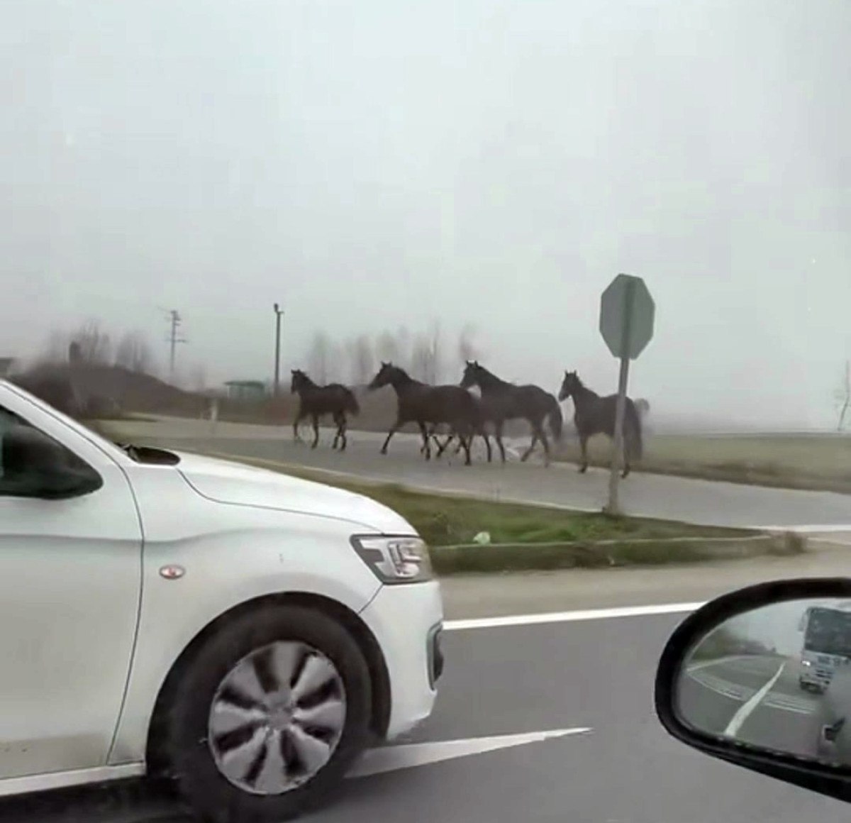 Sakarya’da kara yoluna çıkan atlar, sürücüleri şaşırttı
