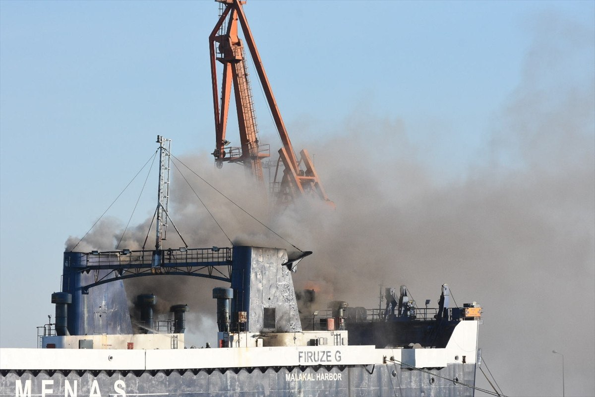 Samsun Limanı’nda bulunan kuru yük gemisinde yangın çıktı.