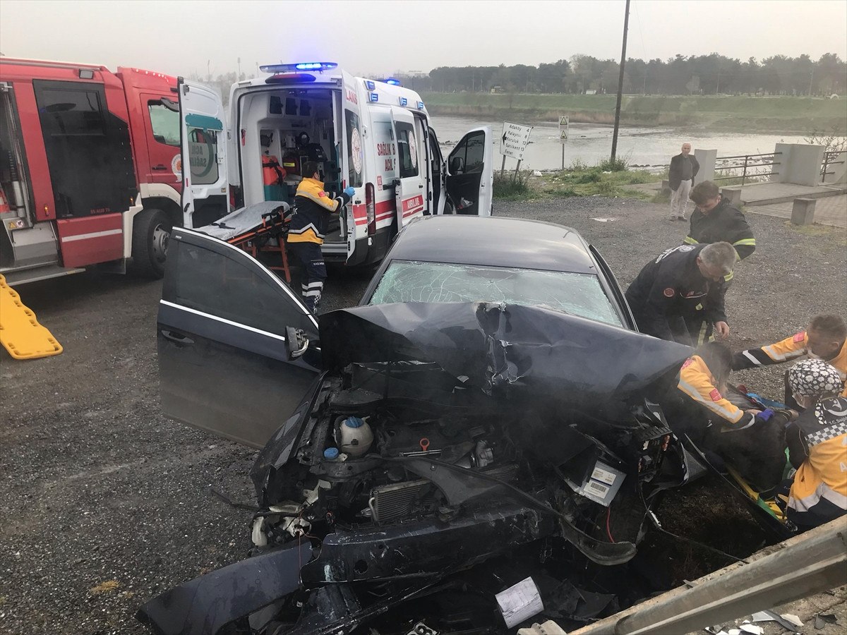 Kazada, sürücü ile otomobilde bulunan Barış Eroğlu (29) yaralandı.