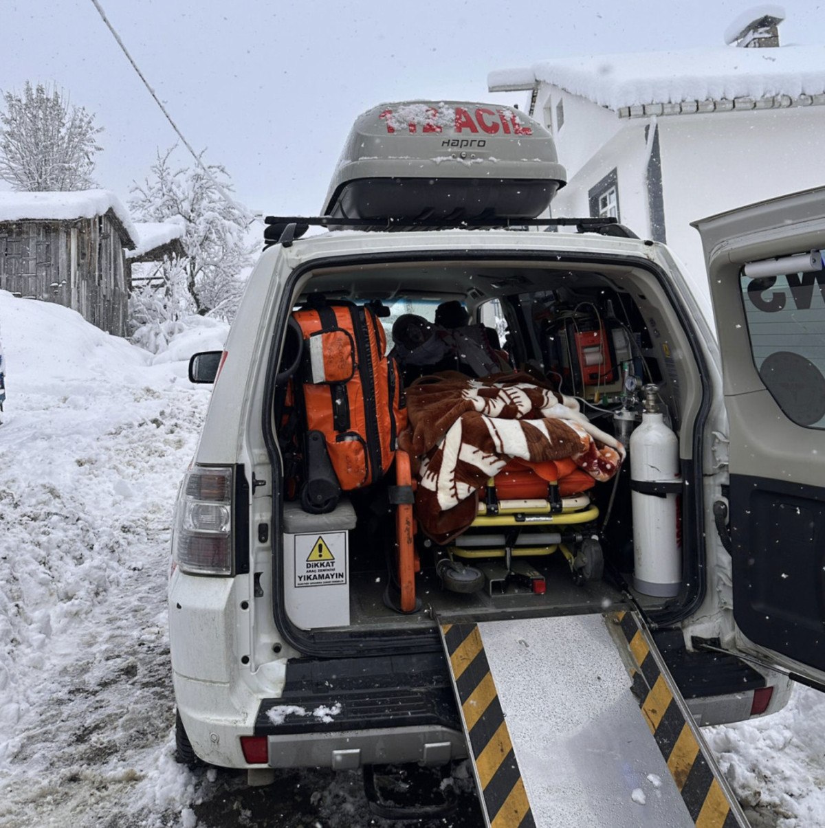 İhbar üzerine adrese UMKE ekipleri sevk edildi. Ekipler, yaklaşık 30 santimetrelik kar olan yolu ve devrilen ağaç dallarını temizleyip, 23 kilometre yol katederek eve ulaştı.