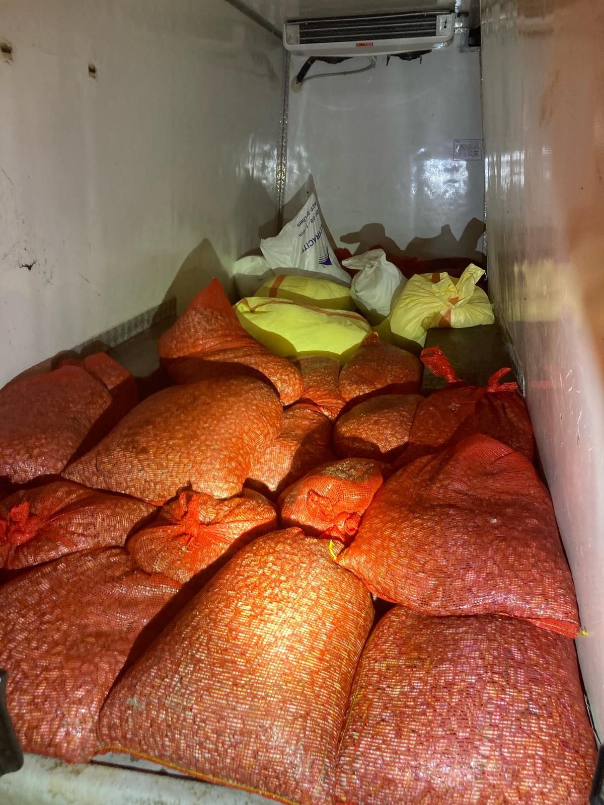 Yapılan aramalarda, yasa dışı yolla avlanmış 1 ton kum midyesi ele geçirildi.