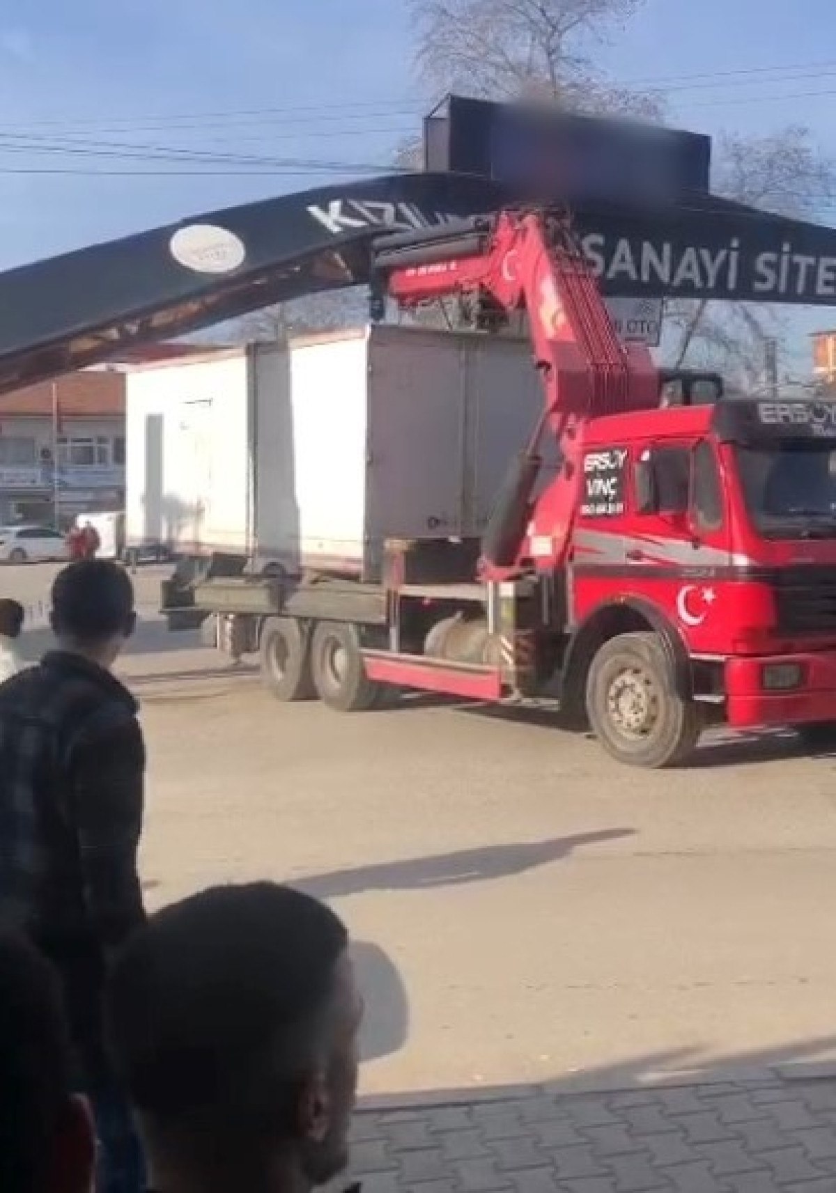 Samsun’un Bafra ilçesi Kızılırmak Sanayi Sitesi girişinde konteyner taşıyan vincin geçişi sırasında kaza meydana geldi.