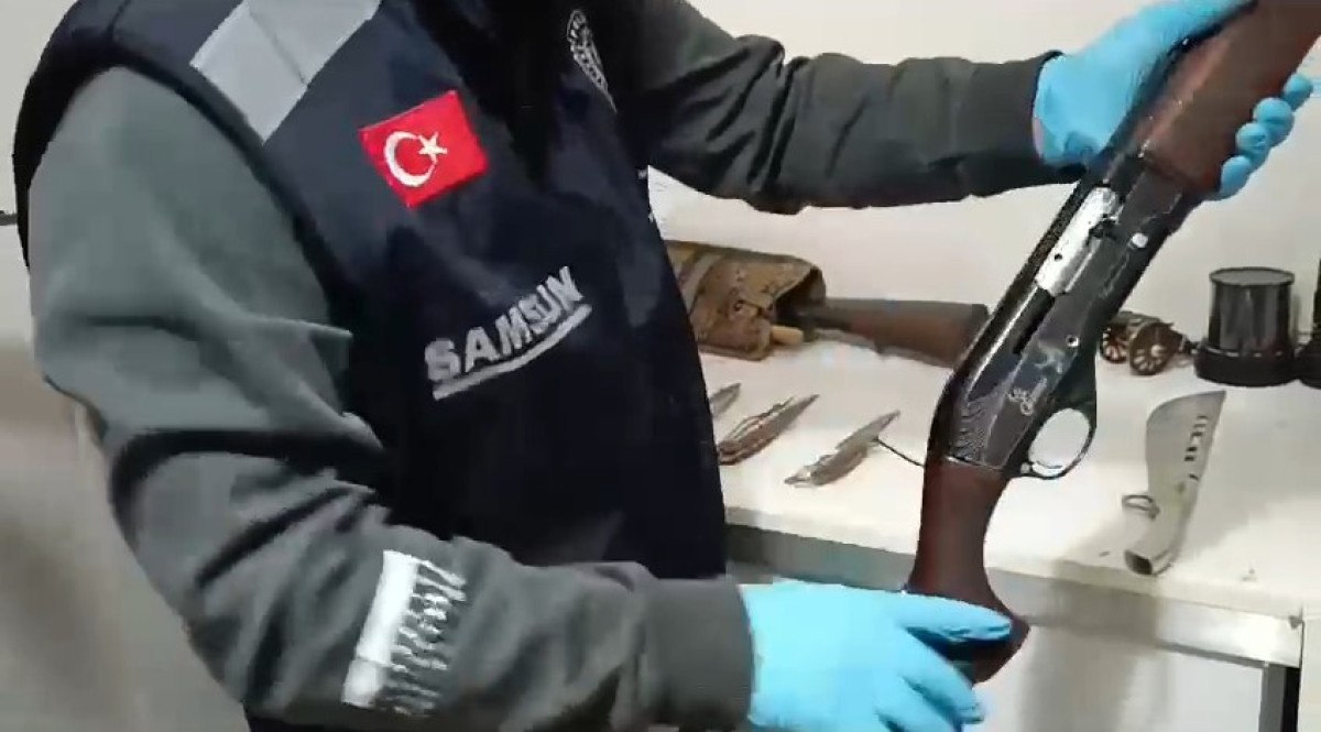 Atakum ilçesi’nde bir eve yapılan baskında, çok sayıda yasa dışı silah ve mühimmat ele geçirildi. Yapılan aramalarda, 3 ruhsatsız av tüfeği, 32 sivri uçlu bıçak ve kama, 3 kurusıkı tabanca, 1 muşta, 59 tabanca fişeği, 8 kurusıkı tabanca fişeği ve 971 tüfek fişeği bulundu.