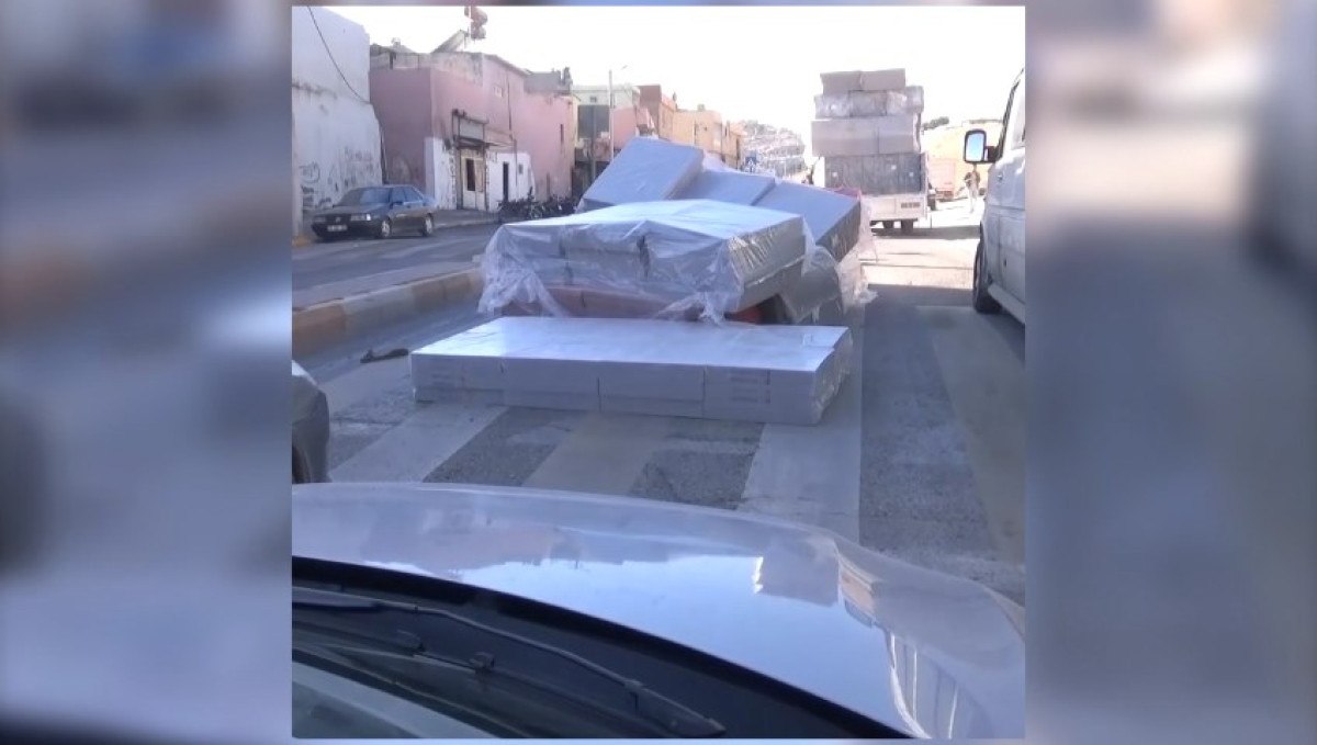 Şanlıurfa’da şehir içi yük taşımacılığı yapan, plakası henüz belirlenemeyen bir kamyonetin kasasında taşınan onlarca yatak süngerini tutan ip, seyir halindeyken koptu. İpin kopmasıyla birlikte süngerler yola savrulurken, arkadan gelen araçlar büyük bir kazanın eşiğinden döndü.
