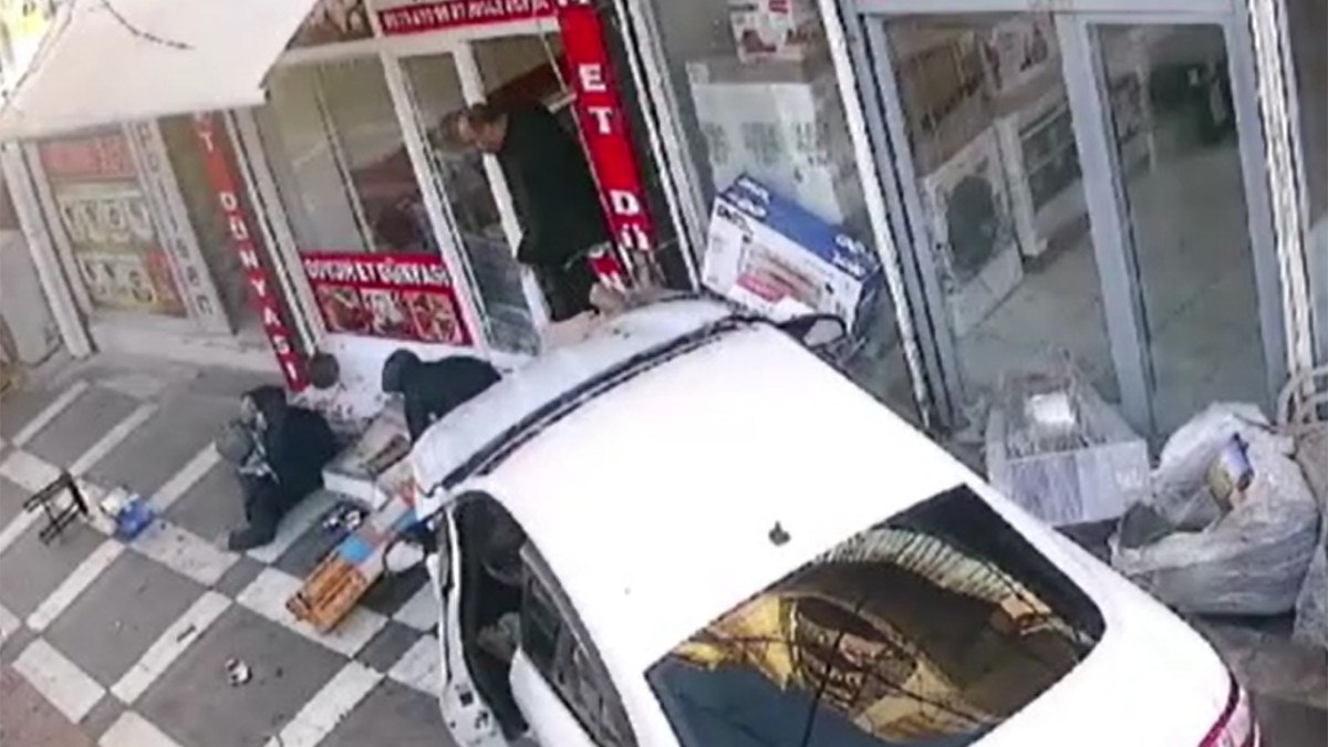 Öte yandan kaza anı çevredeki iş yerlerinin güvenlik kameralarına yansıdı.