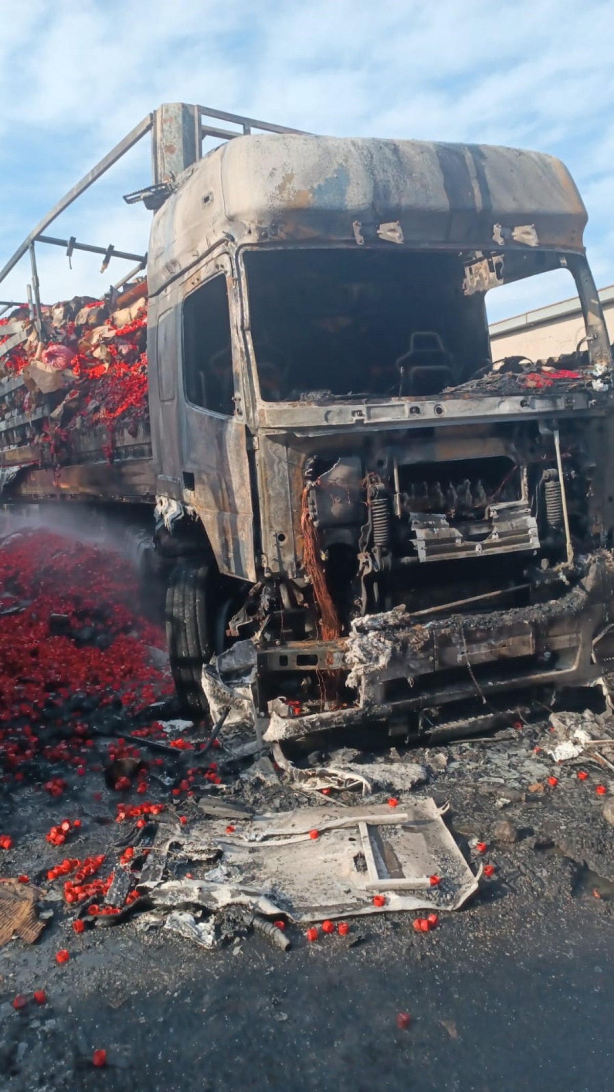 Büyüyen alevler, otobüsün yanında bulunan tıra sıçrayarak yangının daha da büyümesine sebep oldu.