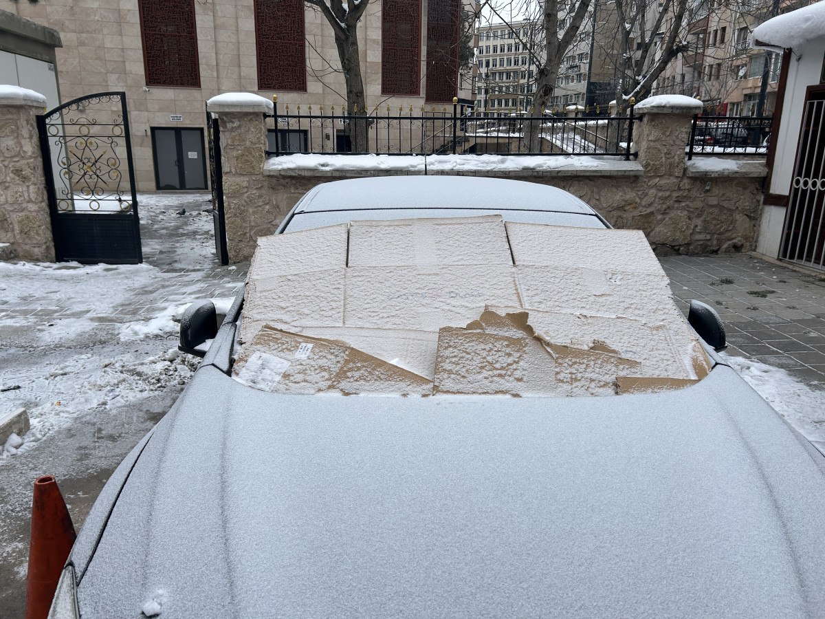Çatılarda da buz sarkıtları oluştu. Sürücüler, park halindeki araçlarını soğuktan korumak için üzerlerini kartonla örttü.