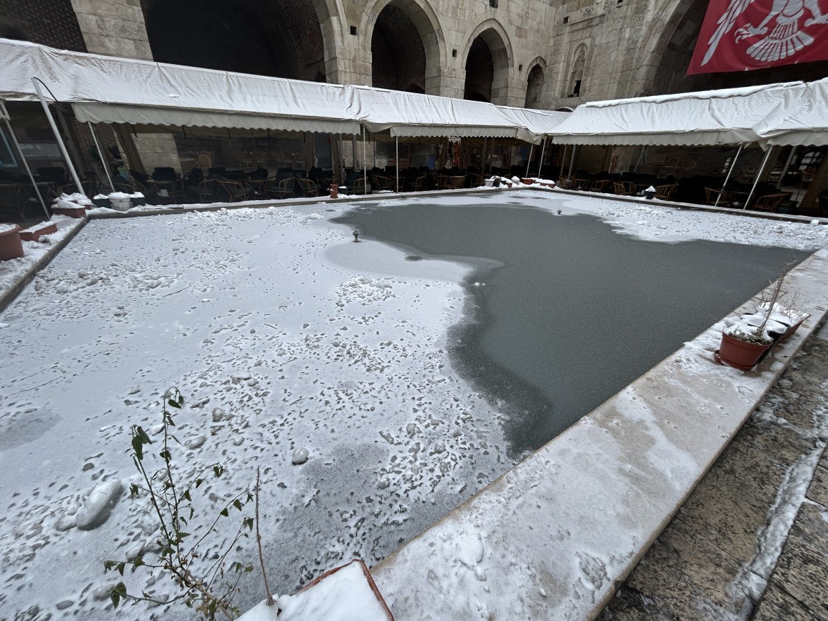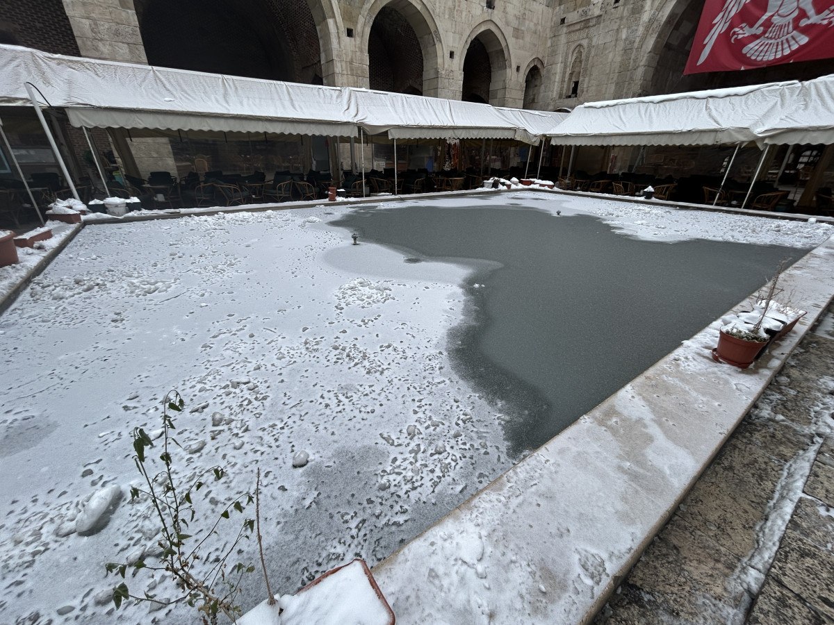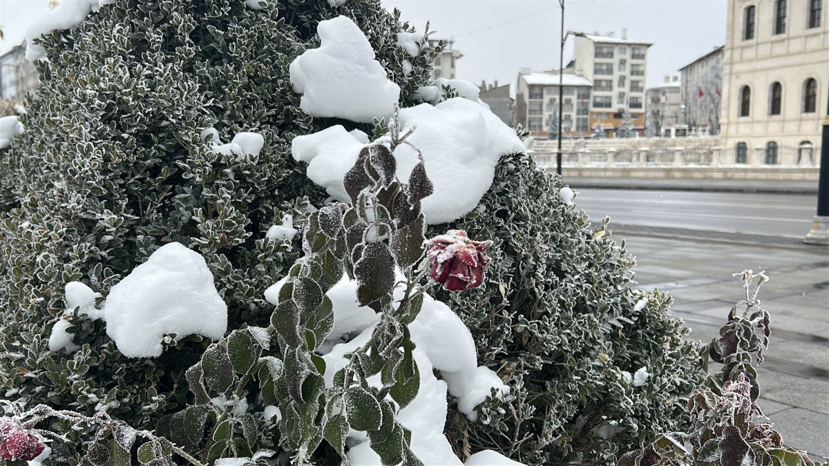 Hava sıcaklığının düşmesiyle süs havuzları dondu, ağaçlar buzla kaplandı.