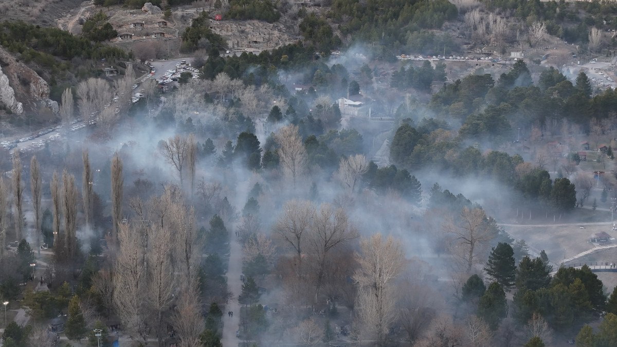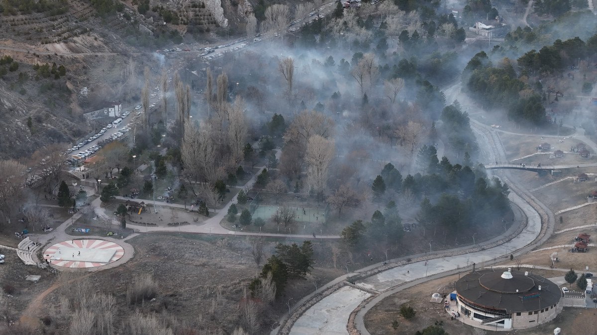 İftar saatine yakın aynı anda yakılan mangallardan çıkan yoğun duman ise orman yangılarını andıran görüntüler oluşturuyor.