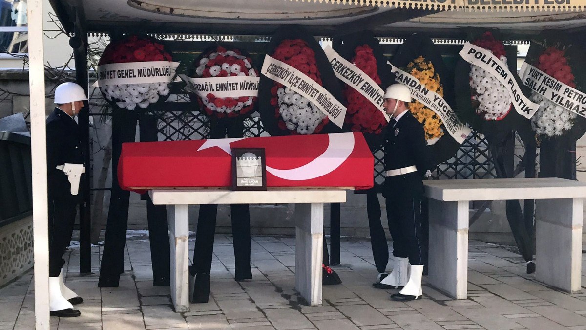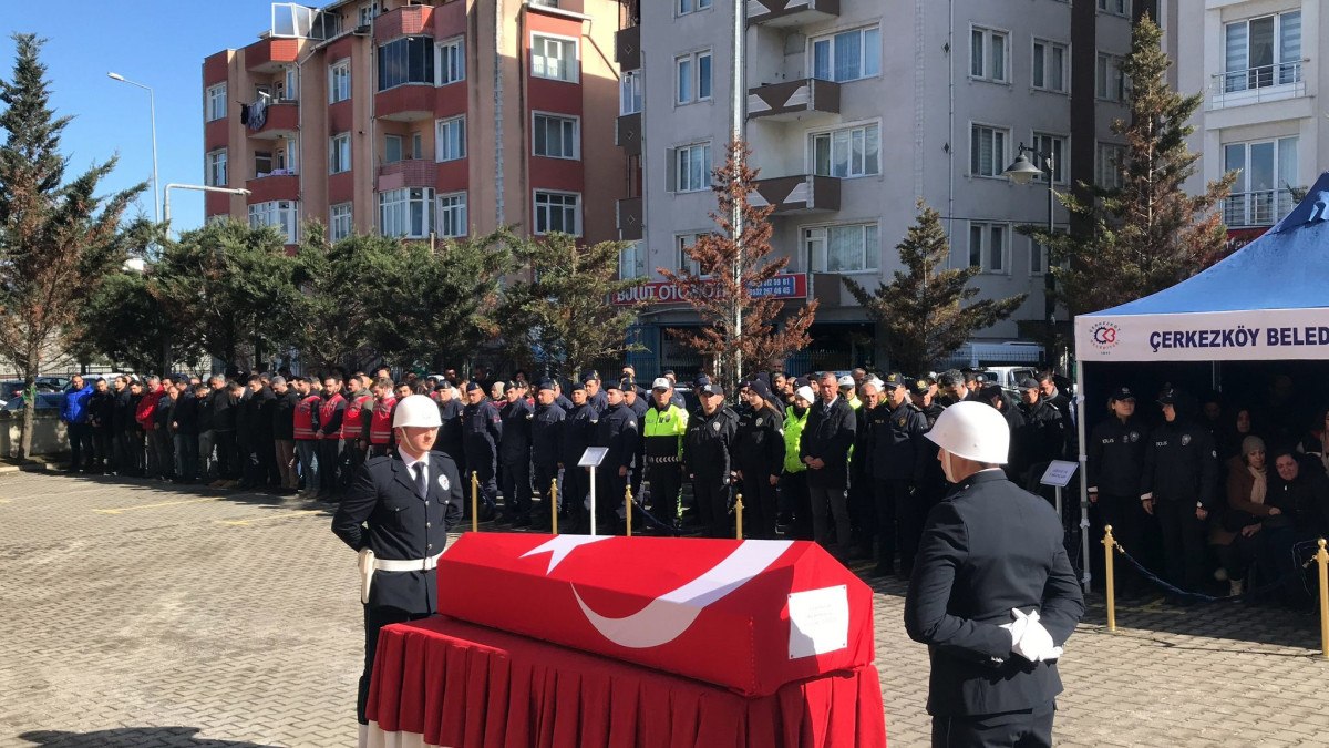 Evli ve bir çocuk babası Ümit Saçan için Çerkezköy İlçe Emniyet Müdürlüğü önünde tören düzenlendi.