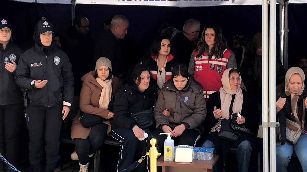 Törende polis memuru Saçan’ın ailesi ve meslektaşları gözyaşlarını tutamadı.