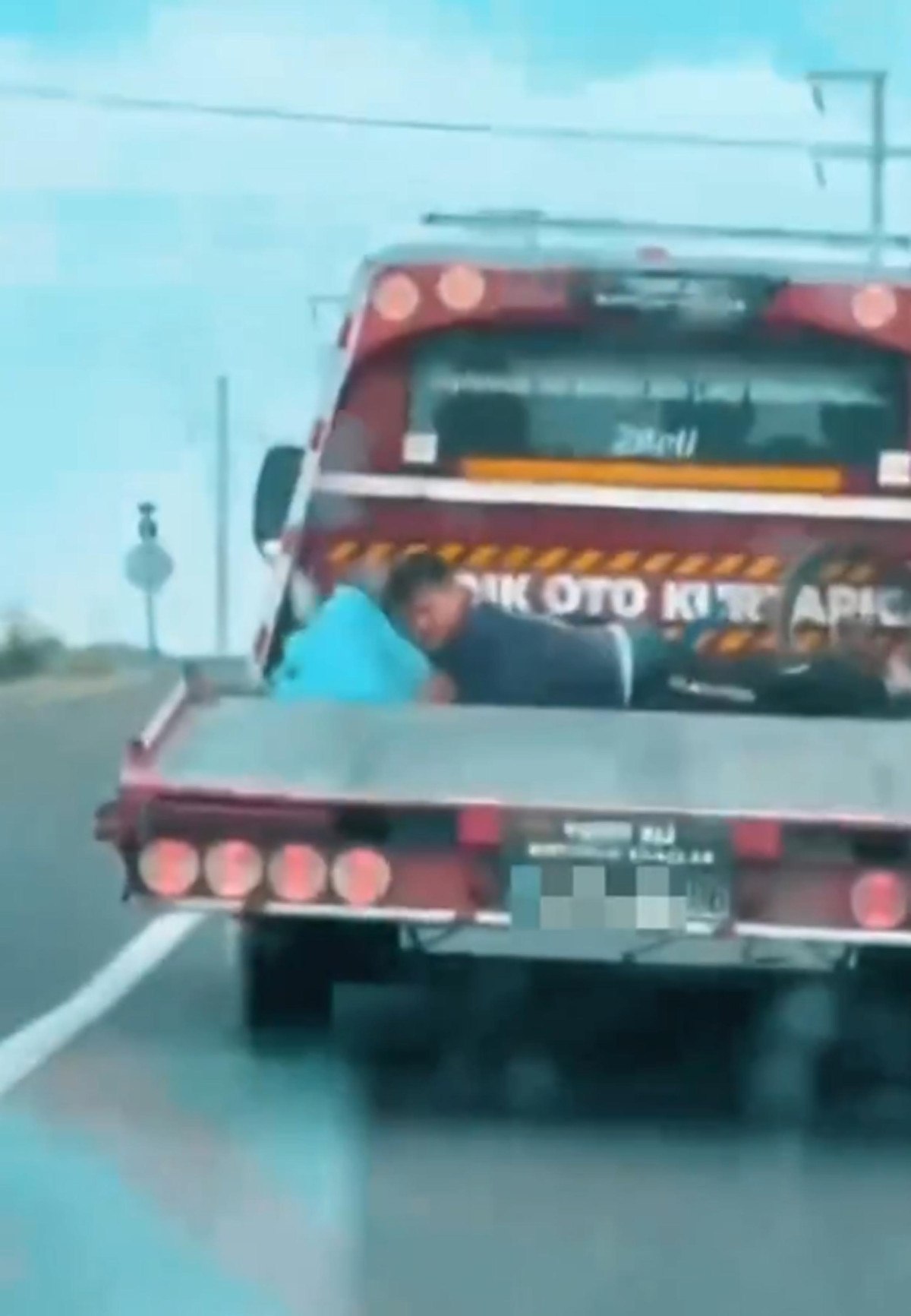 Tekirdağ’ın Kapaklı ilçesinin Karaağaç-Bahçeağıl kara yolunda ilerleyen bir çekicinin üzerinde çocuğun seyahat ettiğini gören bir sürücü, bu anları cep telefonuyla kaydetti.