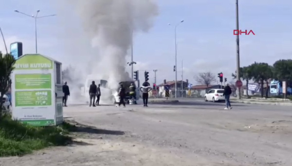 Tekirdağ’da seyir halindeki yolcu minibüsünden alevler yükseldi