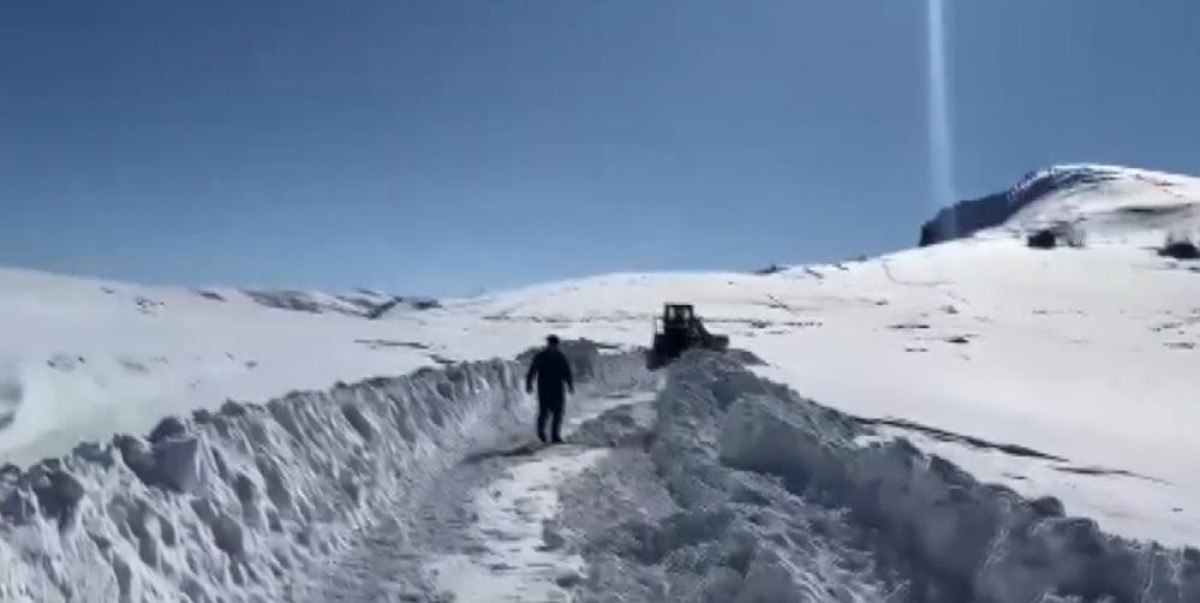 1970 metre yükseklikte ve kar kalınlığı 2 metreyi bulan bölgede iş makineleri ile birlikte gelen ekipler, yoğun çalışmayla Uzunkaya’yı kurtardı.