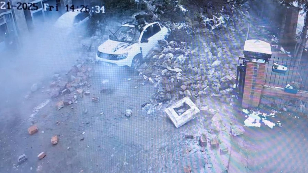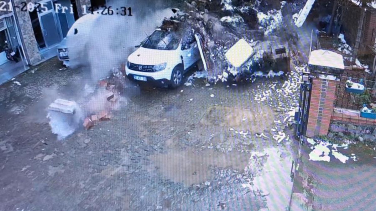Karslıoğlu’nun aracıyla ayrılmasından saniyeler sonra sitenin bahçesindeki istinat duvarı çöktü.