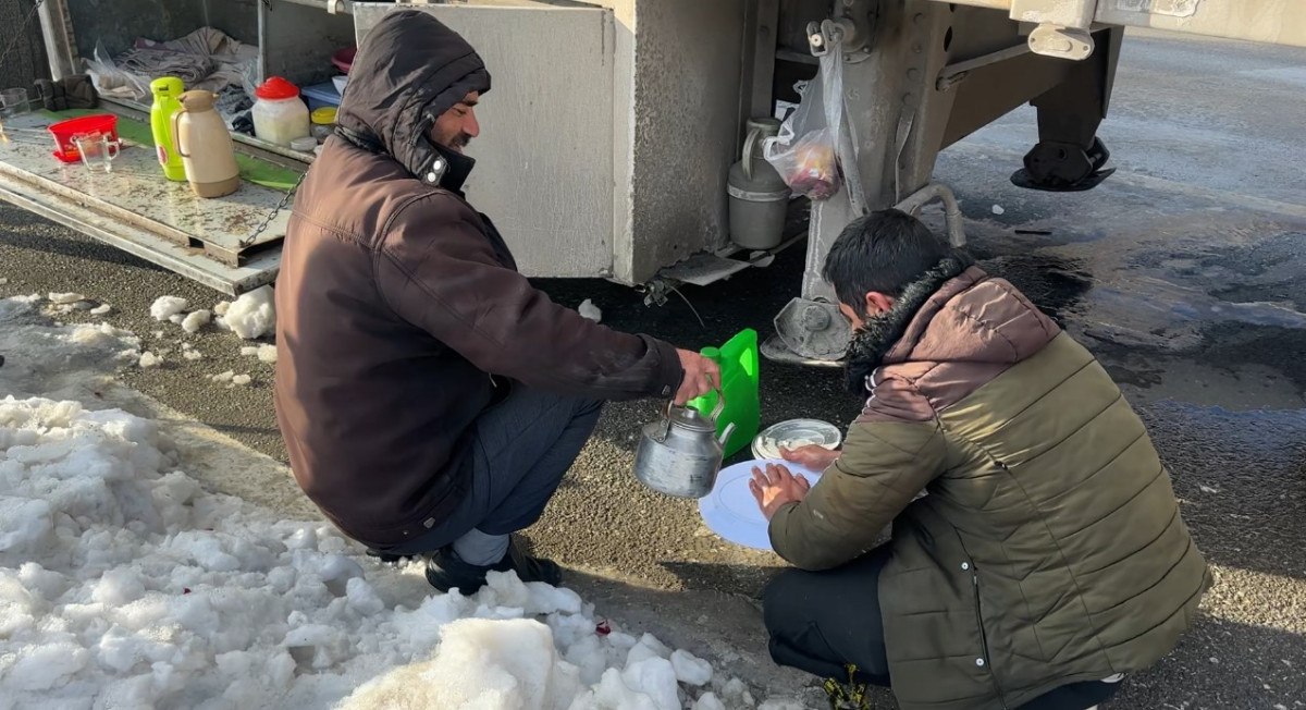 Tır şoförleri de havanın soğuk olduğunu ve yemeklerinin bitme aşamasına geldiğini belirterek acilen sorunun giderilmesini istedi.
