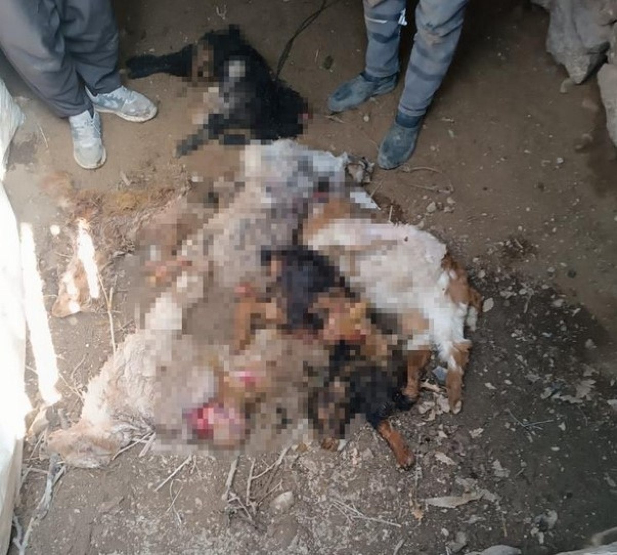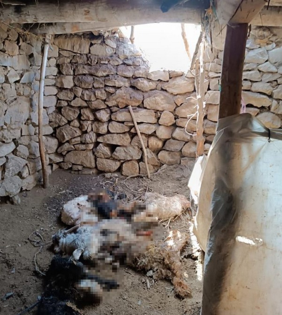 Van’ın Çatak ilçesindeki Övecek Mahallesi’nde dün gece Hüseyin Tuman’a ait ahırın toprak damını delerek içeri giren ayı, 18 oğlak ve 2 keçiyi telef etti.