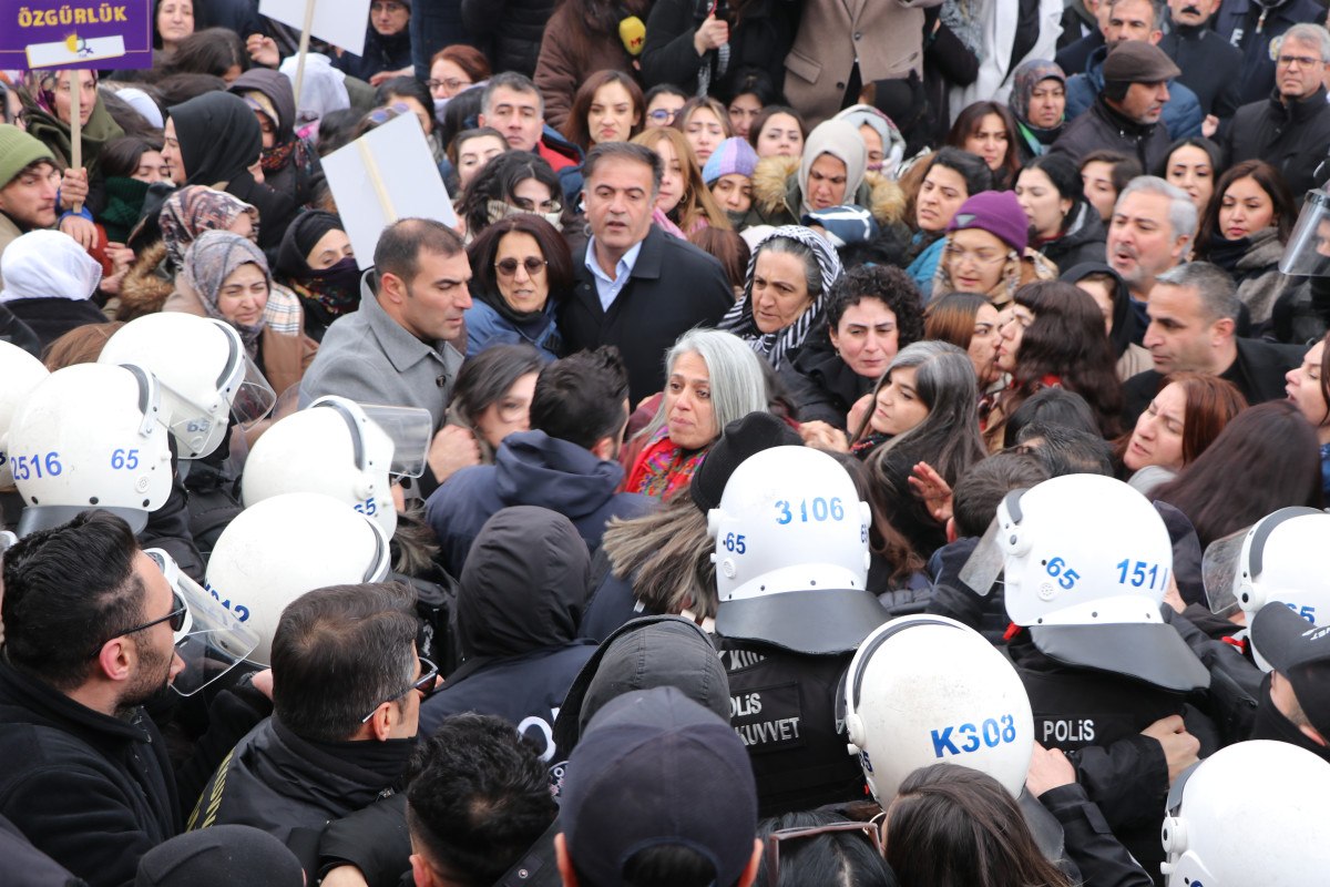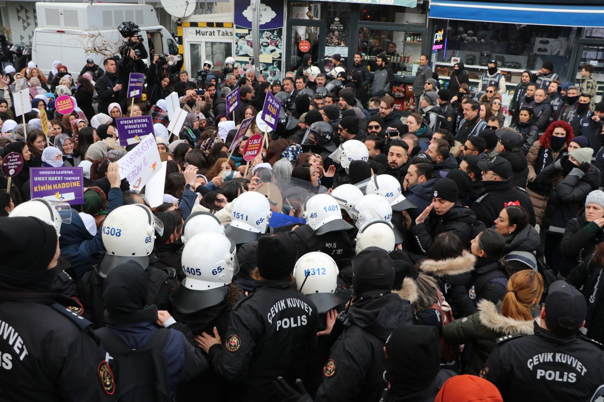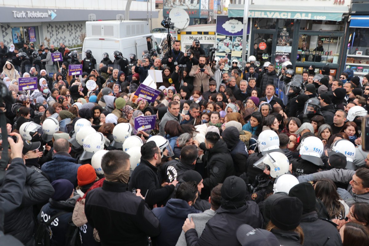 Bölgede güvenlik önlemi alan polis, eylemin izinsiz olduğu gerekçesiyle gruba izin vermedi.