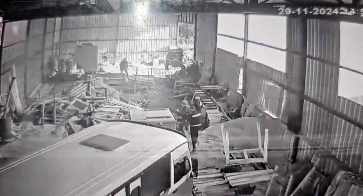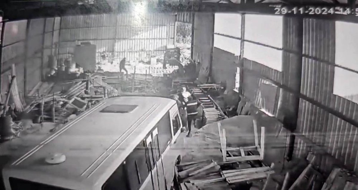 Makineleri ve istiflenen ahşap malzemeleri minibüsle deviren O.Ç., yaşananların ardından olay yerinden ayrıldı.