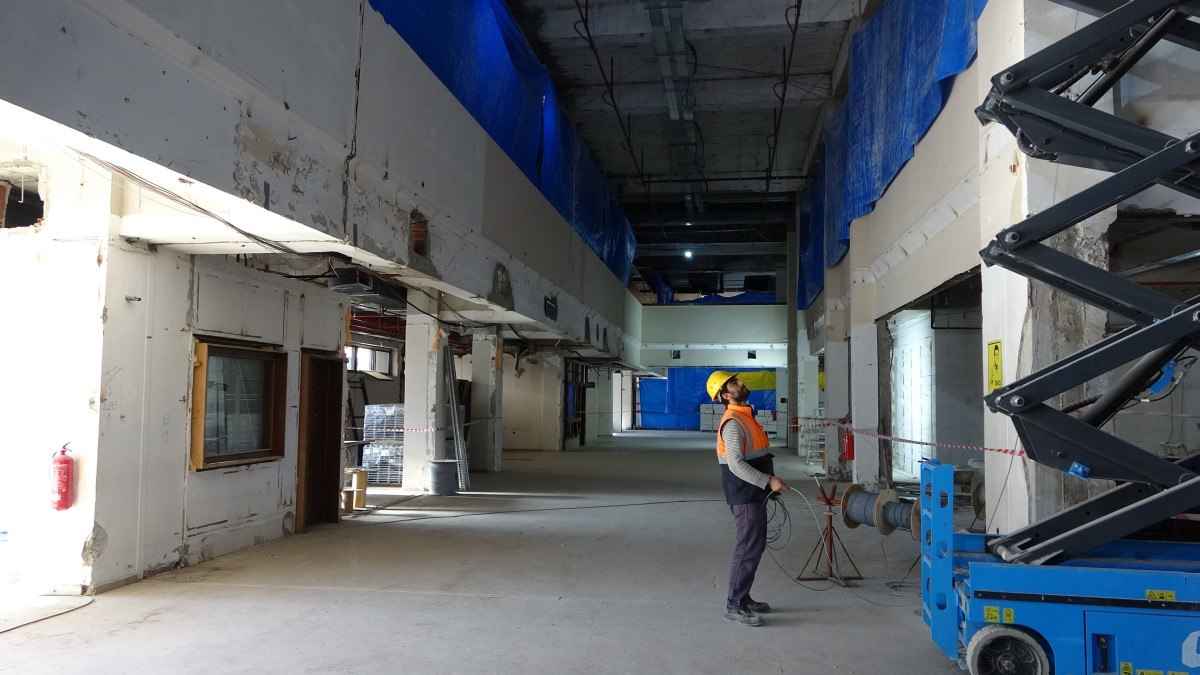 Burası dış hatlar gidiş ve geliş terminaliydi. Hemen arkamda geliş terminalini bitirerek hizmete açmıştık. Şimdi burayı gidiş terminali olarak projelendiriyoruz. İnşallah arkadaşlardan aldığımız bilgi 15 Nisan’a kadar bitirilmesi noktasında. Biz de bitirilebileceğini düşünüyoruz ve turizm sezonuna inşallah havalimanımızın dış hatları gidişini de hazır hale getirmiş olacağız.