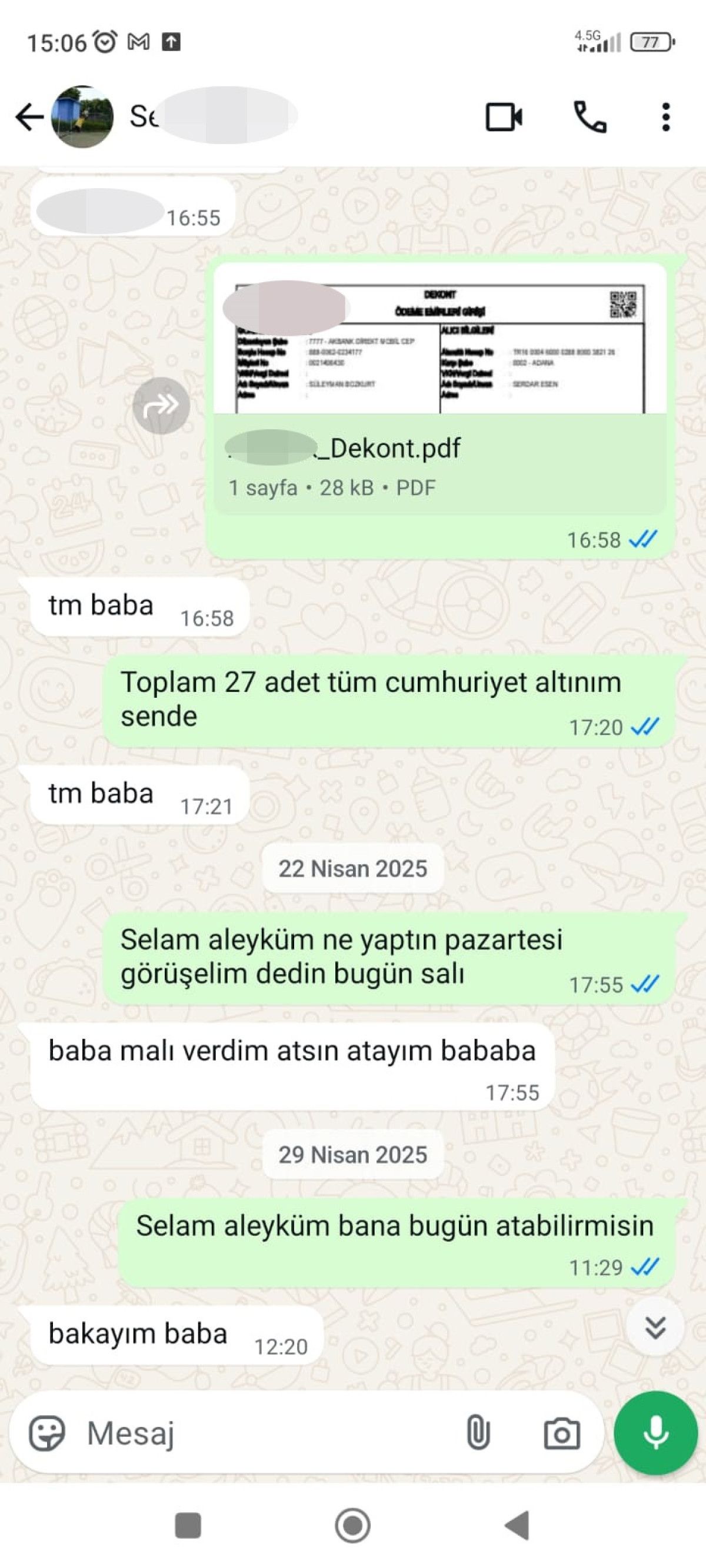 Bu kişi 30 yıldır tanıdığımız, aile dostumuzdur. Ortamızda bugüne kadar hiçbir sorun yaşanmadı. Kendi kardeşim bu türlü bir işi yapar, bu kişi ise asla yapmazdı; o kadar güveniyorduk. Bana gelip, ‘Altın ve paran bende kalsın’ diyerek emanet aldı. Lakin artık kendisini arıyoruz lakin bulamıyoruz. Eşi, dostu ve akrabaları da sahip çıkmıyor. Eşini ve çocuklarını mahallede bırakıp kaçtı. Mahallede birçok kişiyi dolandırdı; bildiğim kadarıyla 70-80 kişiyi dolandırdı. Bu olayın ortaya çıkmasını istiyoruz. Yetkililerden yardım bekliyor, şahsın bulunmasını talep ediyoruz. Büyük bir gerilim altındayız, büyük paralarımız gitti. Bütün mahalleden, akrabalarından aldığı paralarla kayboldu.